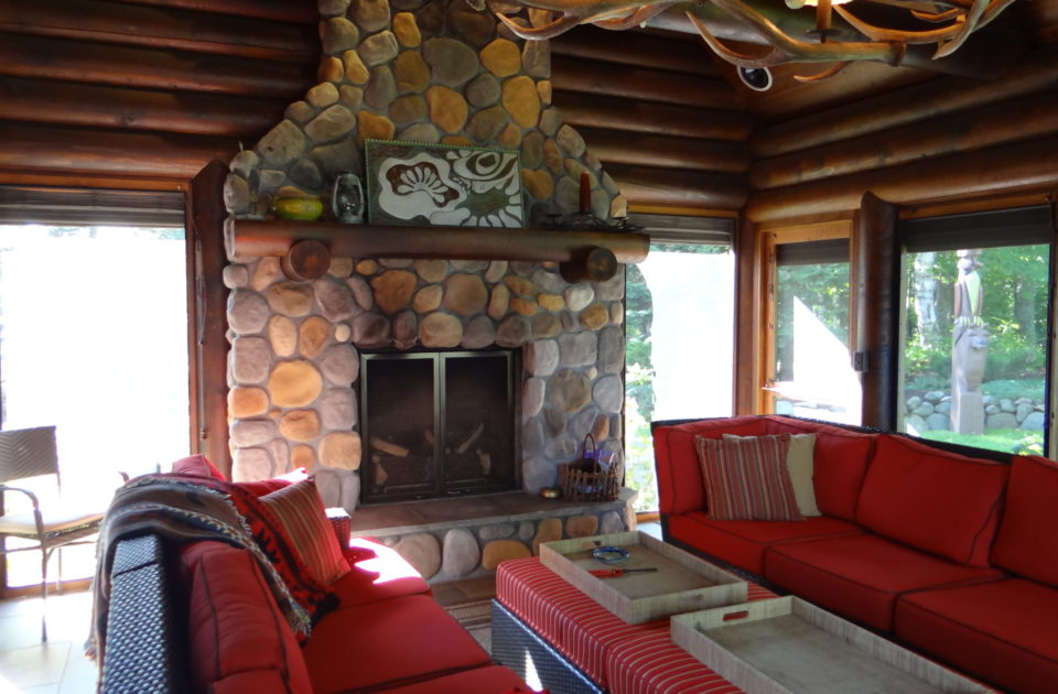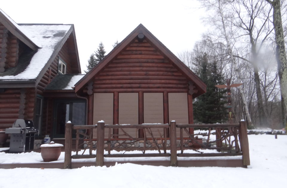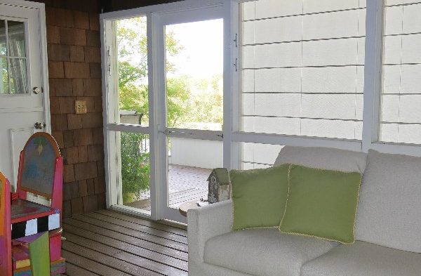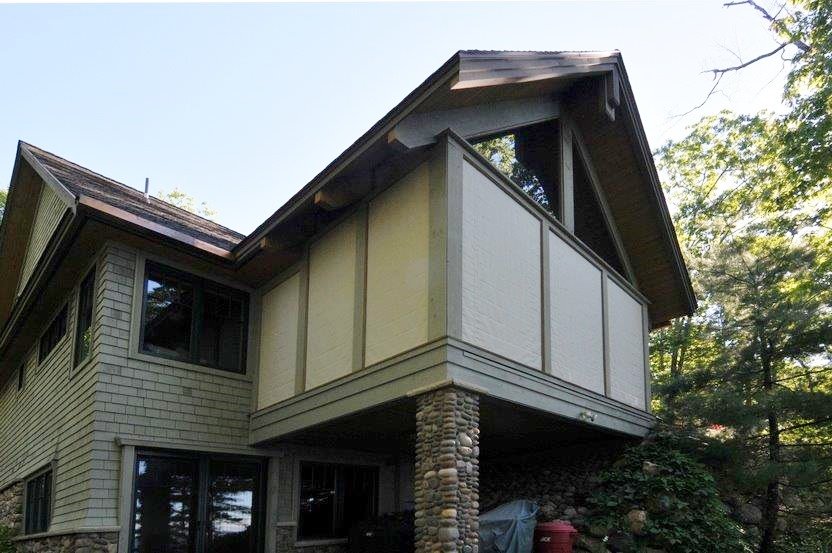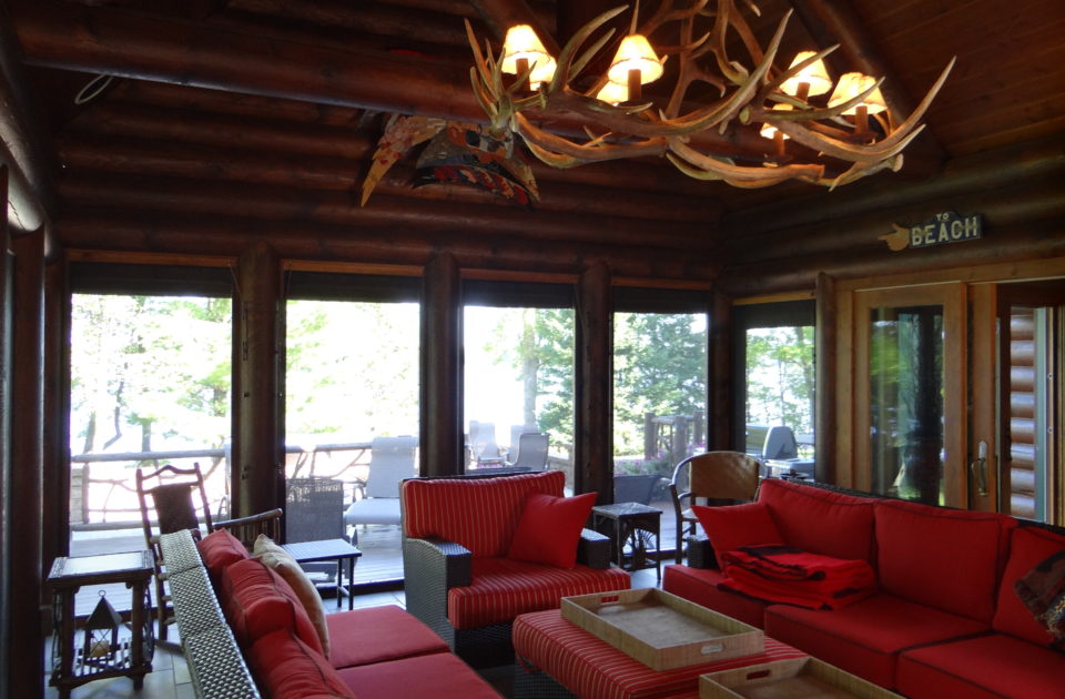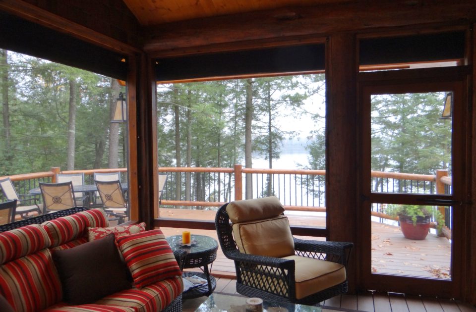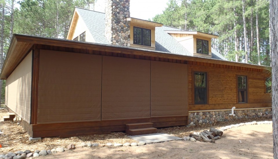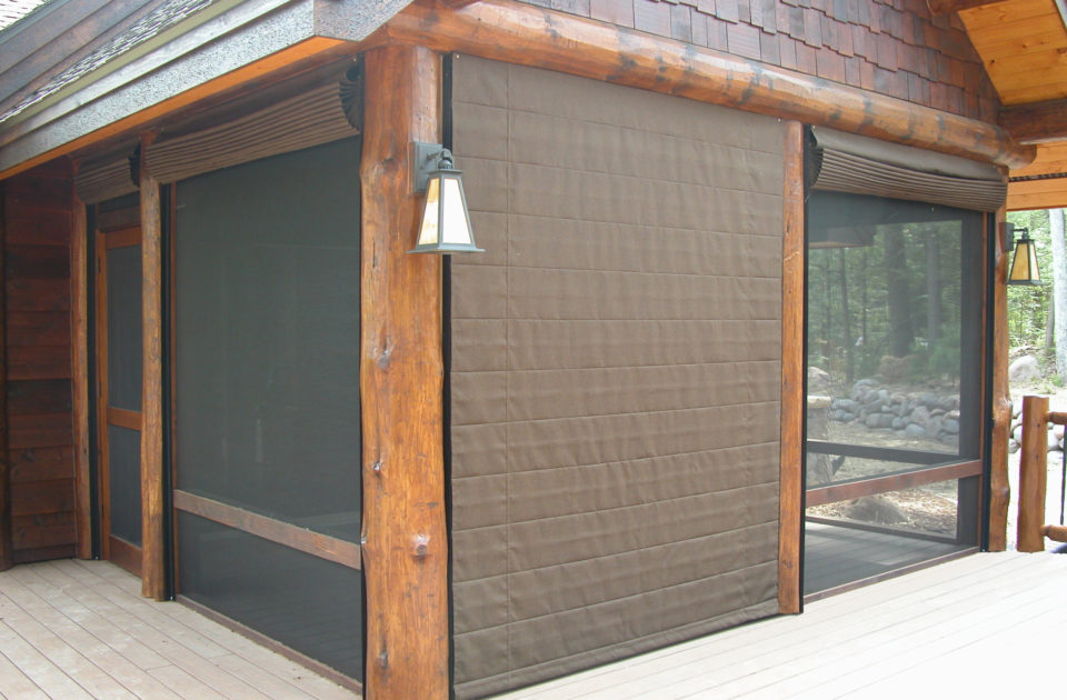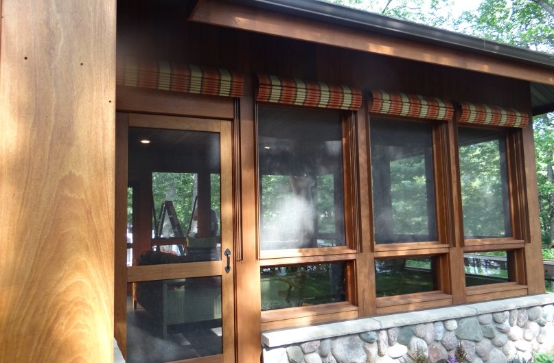 A Northwood’s Cabin designed with an artist eye for detail. Our homeowner wanted a cabin reminiscent of the 1930”s screen porch. A place for family and friends to relax, play board games and enjoy the fresh air. For children to chase fireflies and swim in the warm lake water in their backyard. Her dream was of a home that spoke of deep family ties and fun summer nights. A welcoming haven from life’s frantic pace. We are so proud that Weather Queen Shades helped them to realize their dream of a clean protected porch.