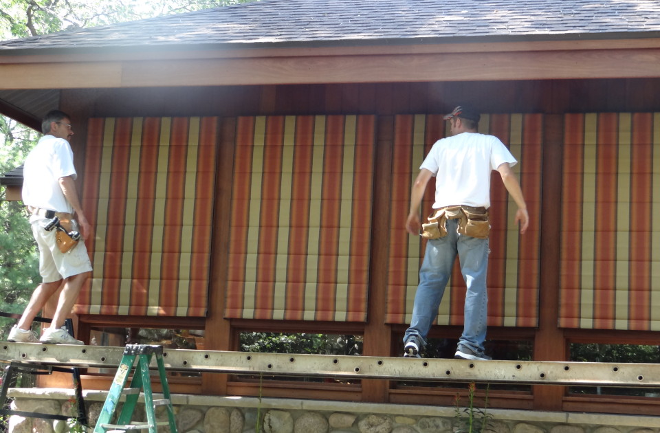 Working with our homeowners builders was such a pleasure. They replaced the screening and built the necessary framing needed to assure the shades reflected the custom quality of their beautifully crafted north woods screen porch. We installed in December of 2014 and it went like clockwork.