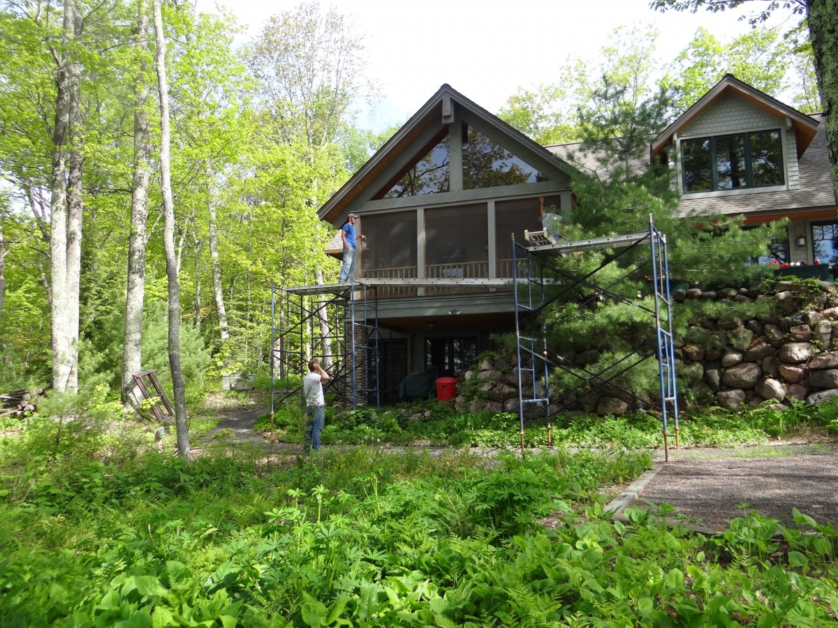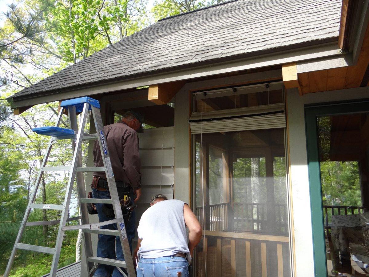 Working with our homeowners builder, Greg Carrier, to protect their much loved screen porch from the winds and weather coming off Lake Superior. It was such a pleasure to be part of his beautifully crafted home. I am always amazed at the craftsmanship and quality of our builders. Just regular looking guys that take great pride in doing beautiful work.