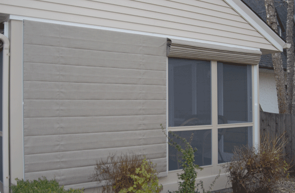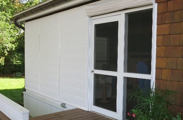 Testimonial: “Shades did great in the storm (30 inches with blizzard force winds) and I had piece of mind throughout because I knew they would. Porch and all the contents completely protected. Love everything about them – how they protect, how they operate, how they look, and how they endure. Looking back, especially having had the shades through some rough weather, doing it again would be a no-brainer. I enjoy ‘showing them off’ when we have visitors, and telling the story of how found your company on the internet, etc. Wishing you continued success with your great product.”