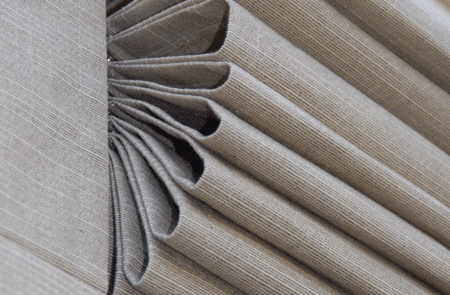 Our homeowner’s lakefront cabin reflects their personality. With a yard filled with herbs, wildflowers, berries and nesting locations for wild life, the sunny Ginko fabric reflects their love of life. Linda says every time she looks at her shades, she smiles.